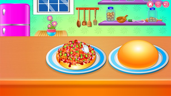 1、有趣的游戏操作,灵活使用这里给出的物品,仔细搭配美丽的食物。