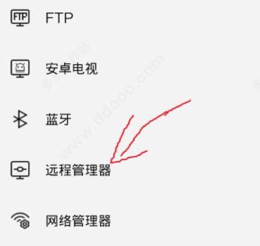 打开es文件浏览器,打开“网络”卷展栏,进入远程管理器;