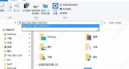 最后,我们在电脑上打开“此电脑”(这台电脑、我的电脑),在地址栏输入ftp://192.168.1.109:3721,回车,就可以看到手机中的文件了。