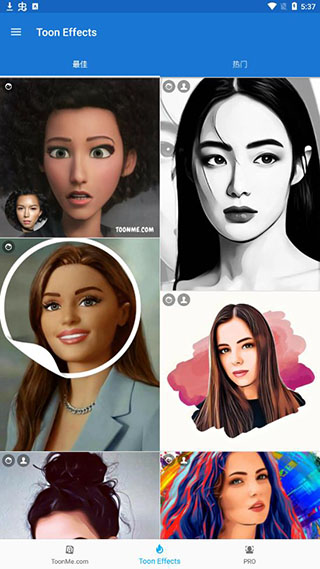 1、成功下载安装之后打开应用,可以左右滑动选择一个喜欢的toonme特效,然后选择照片;