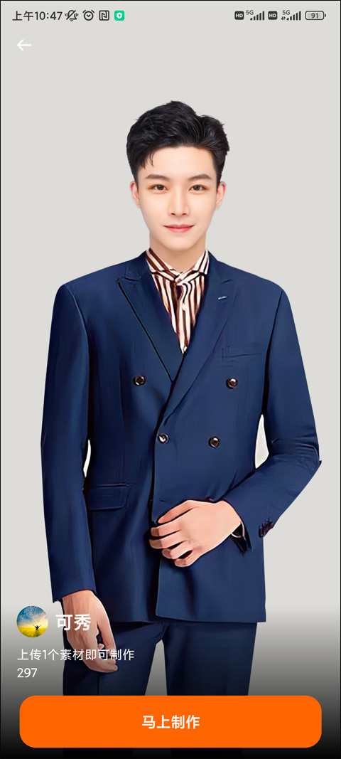 4、图片、背景也是一样的,点击马上制作,添加制作素材,即可完成制作