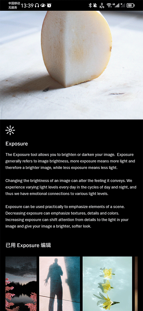 6、若不清楚曝光度、对比度是什么?用了后有什么区别时,可以点击中间的文字