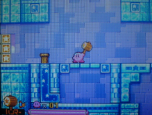 6-4:宝箱个数:3 在开始的场景中一有冰块的地方下面可以取得一个宝箱!在后面一个用东西吊起的平台用剑或者魔术师或回力标切割掉返回就可以拿到一个宝箱!EX钥匙!
