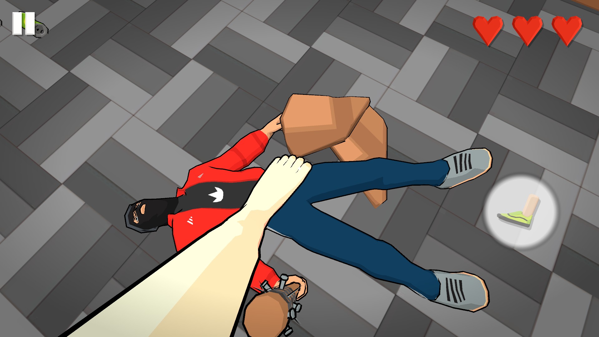 2、碰到的敌人,你一脚就可以踹死他,但是小心不要被打到了,你只有三个血条