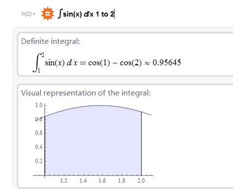 第二种:如下图所示,在WolframAlpha中通过积分函数完成