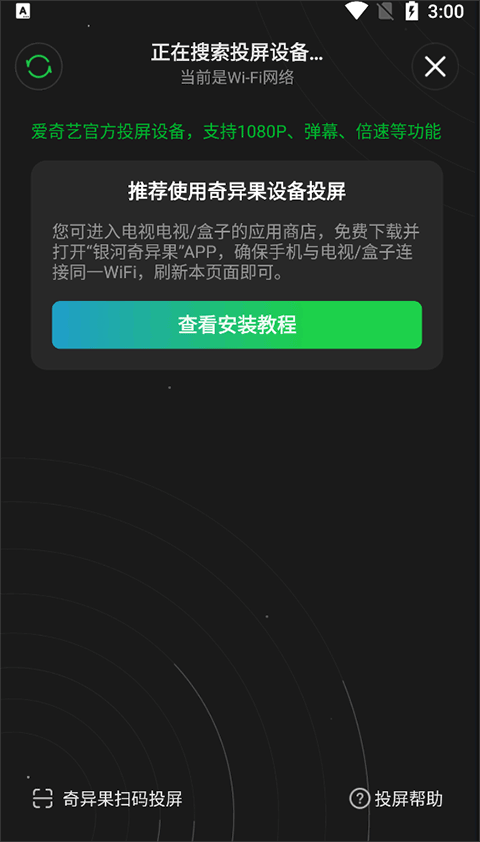 3、在这里就可以进行投屏了,投屏方式有扫码、默认的搜索发现;