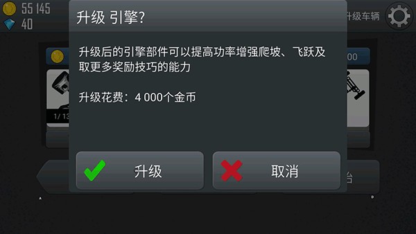 首当其冲的就是引擎了,引擎给我们小车的爬坡能力带来了不少的帮助,当我们给引擎升级后,能够提高小车的爬坡能力以及飞跃能力,其次升级引擎还可以提高其他技巧带来的奖励,对于喜欢玩花哨技巧来获取大量分数的朋友来说可以适当升级,如果引擎的等级和其他配件相差过大的话有可能让小车的翻车率变大,小编建议大家刚刚开始玩的话还是放慢升级引擎的脚步,安安稳稳获取稳定的分数就挺好的。