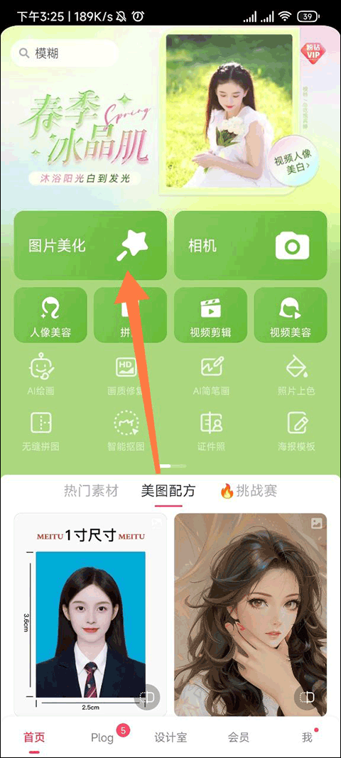 首先当然是打开今天的主角“美图秀秀”了,打开美图秀秀后能够看见主页非常丰富的功能,我们先点击图片美化进入选择图片界面。