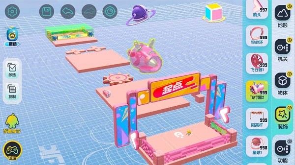 【地形组件】是构成关卡地图的基本组件,通过单指拖拽将地形组件放置在场景中,通过