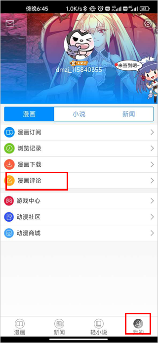 4、那么评论后怎么看自己的评论记录呢?首先到“我的”模板中,然后点击“漫画评论”