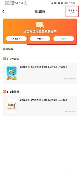 三、通过选择年级、学科、年份,即可筛选出来你需要的教材