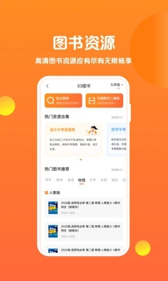 1、支持一键加入书架,一键下载资源,操作方便简洁,帮助学生更好的运用53的图书;
