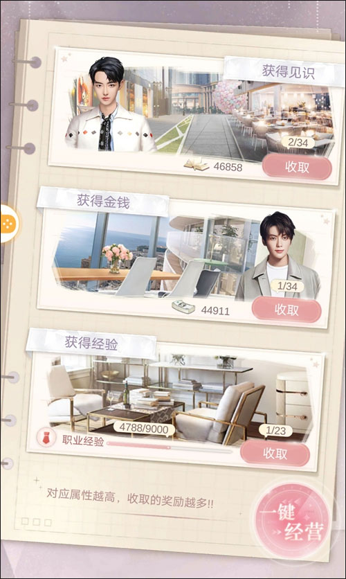 2、在一定时间内,集美能自动获得1次经营收益,收益会自动累计储存,但是有次数限制,到达上限将停止收益累计,所以集美们要及时去经营页面收取收益哦。对了,职业等级/VIP等级越高,可累计的收益次数越高哦~