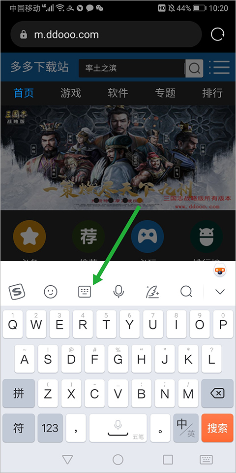 也可以在安装之后,在输入时直接在键盘上点击键盘图标(下图绿色箭头所指)