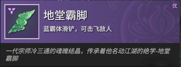 例如地堂霸脚,可以让装备该魂玉的玩家在霸体时施放滑铲将敌人击飞。