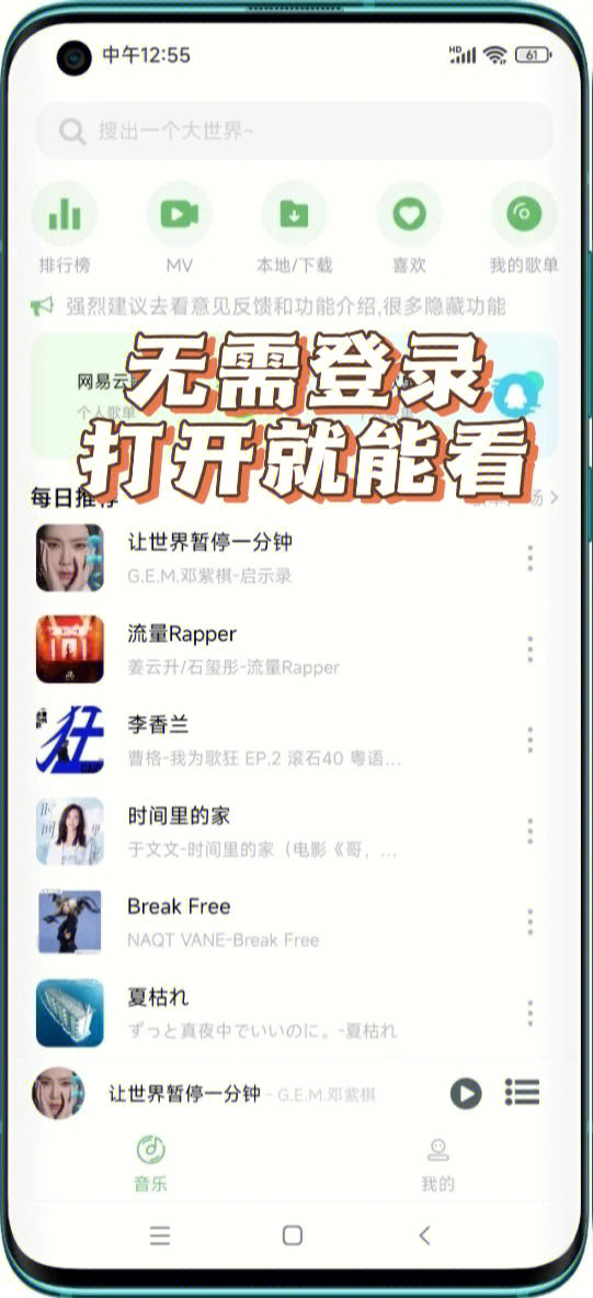 使用起来非常简单,当然就算不登录账号也是支持随意听歌。