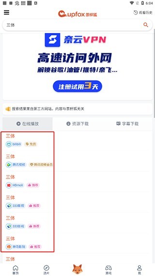 4、特有的云播放形式,衔接互联网资源库,一键搜出你想要的电影。