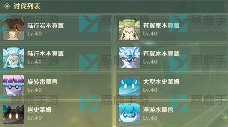 2、讨伐列表如下,都比较脆。