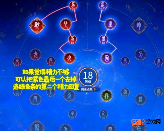 2、精力不足时,可移除紫色最后一个天赋,根据情况选择绿色条的第二个精力回复。