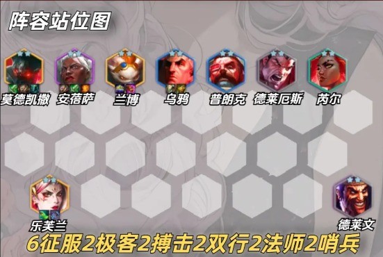 4、阵容所需弈子:铁男、安蓓萨、兰博、乌鸦、船长、诺手、芮尔、妖姬、德莱文。