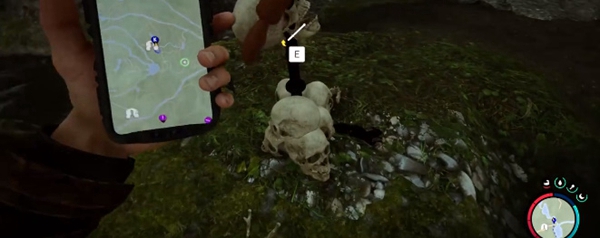 2、在这里我们可以看到有很多的石头,石头上面还有骷髅头。