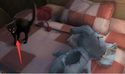 2、然后使用剪刀将大象玩偶打开就会出现黑猫,再使用猫条就能得到黑猫口中的铁球。