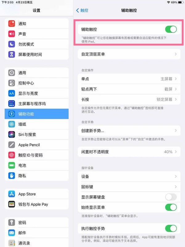 ipad悬浮球怎么设置