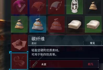 1、碳纤维是游戏中较为后期的一种材料,玩家需要在工作台中进行制作。