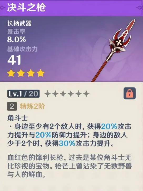 以上便是小编为大家带来的原神长柄武器决斗之枪满级属性介绍,相信在看完以上内容后你已经了解到了武器决斗之枪的属性,更多武器属性敬请关注psp游戏网手游网。