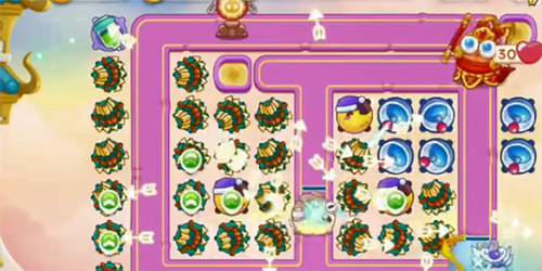1、开局暂停,然后建两个弓箭,锁定中间的河塘,等第一只粉兔子走到左下角拐角的时候,锁定如意,右边的弓箭能升到三级,就直接锁定右边的茶壶。