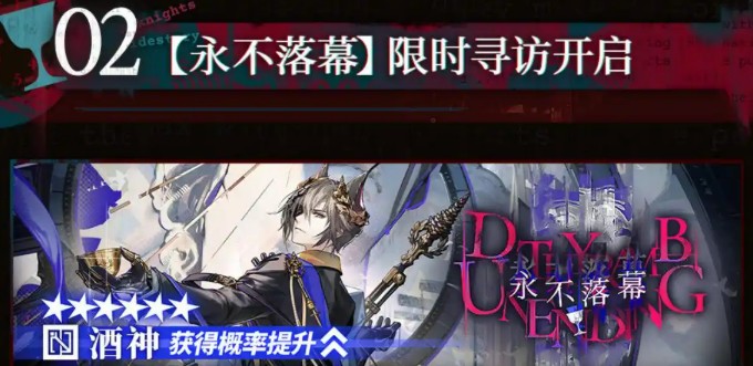 6月5日到6月19日之间,玩家可以通过“永不落幕”限时寻访,获得酒神、蒂比和衡沙的概率提升。