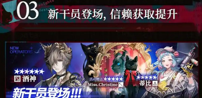 第一阶段主要是娱乐项目,玩家可以通过完成任务解锁新干员“Miss.Christine”,以及大量养成材料等珍贵资源。
