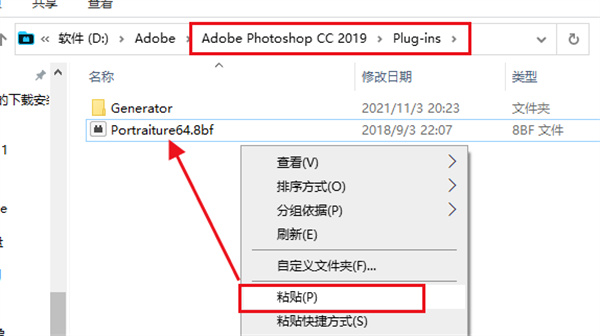4、点击右键-粘贴(将刚才复制的插件粘贴到这里);