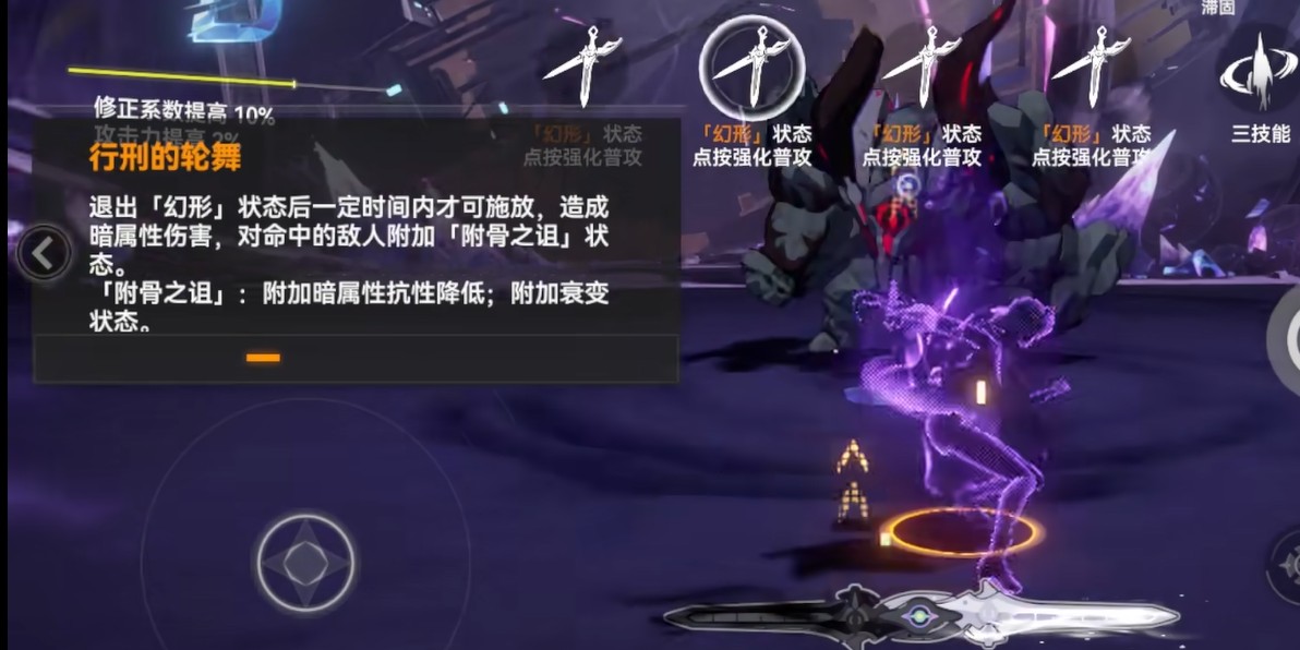 最后是她的技能3“行刑的轮舞”,这个技能是她的终极技能,能在她退出幻形状态后使用。释放后会对锁定的敌人造成1871.7%的伤害,同时附加“跗骨之诅”,削弱敌人的防御。使用这个技能时,塞尔凯特进入“阴影帷幕”状态,可以释放多次“潜袭的伏杀”攻击,造成巨额伤害,且每2秒还会获得2%奥义值。可以说,这个技能不仅伤害爆表,还能帮助她持续提升奥义值,为后续攻击打下基础。