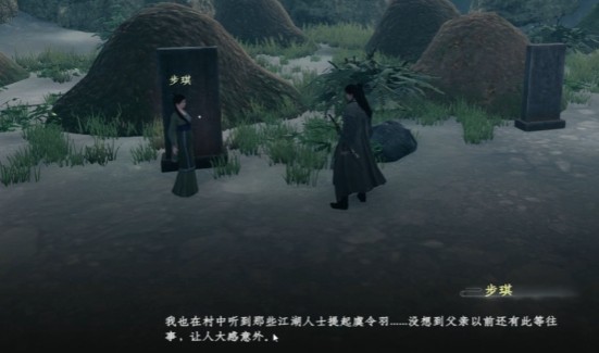 完成线索收集后,任务进入场景探索阶段,玩家需前往云鹤村后山,后山入口位于村落北侧,沿着石阶小路向上攀登,途中需留意两侧的地形特征,按照村长描述的双松伴墓线索寻找目标,当看到两颗树干粗壮、枝叶交错的老松树时,靠近后便能发现树下立着一块青灰色墓碑,墓碑上清晰刻有虞令羽之墓的字样,此处便是祭拜之人任务的核心交互点。