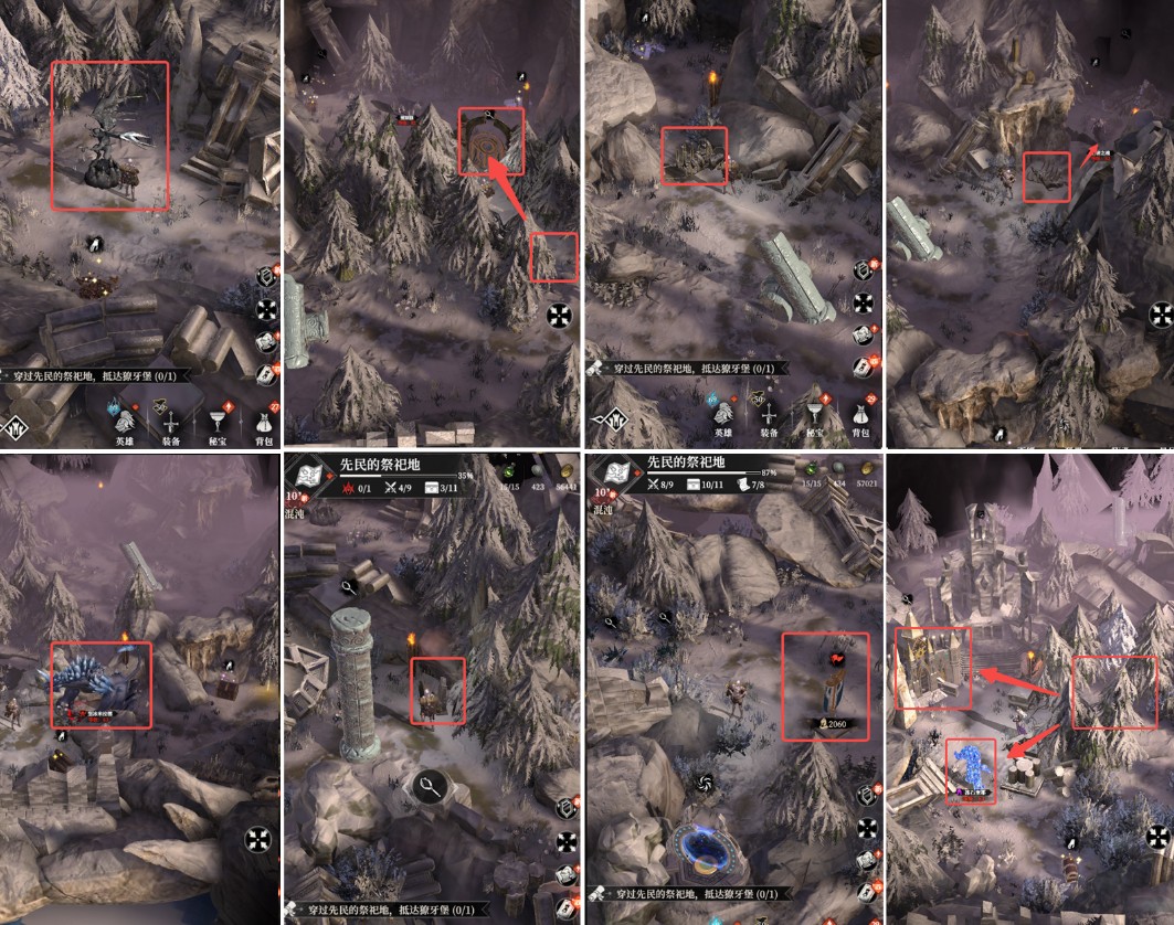 抵达祭祀地深处后,会触发Boss战。击败Boss后会解锁通往獠牙堡的传送点。Boss旁边还有一块墓碑可对话,收获额外物资奖励。触发军团遭遇战,注意场上兵力要有2060。地图左下角,清除遮挡的杂草与树木后,会出现精英怪“冰石奎耶”,常位于初光特级神谕所附近,击败它能拿到不俗奖励。