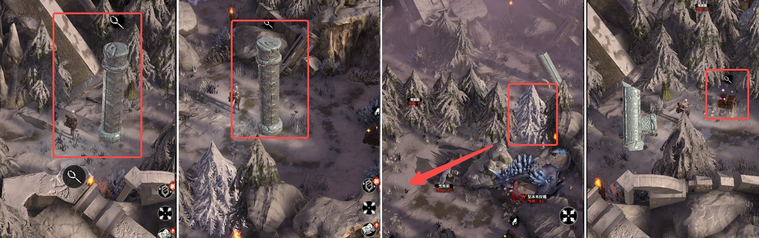 另外,“先民的祭祀地”中还隐藏一个重要事件。入口右侧的宝箱必须激活三根图腾柱才可开启。破坏第一根需力量≥300,接着右侧第二根柱需力量≥1160,最后左下图腾柱则要求力量≥1220。当三根柱子被破坏后,返回入口就能开启该宝箱,获得遗迹石板3号。