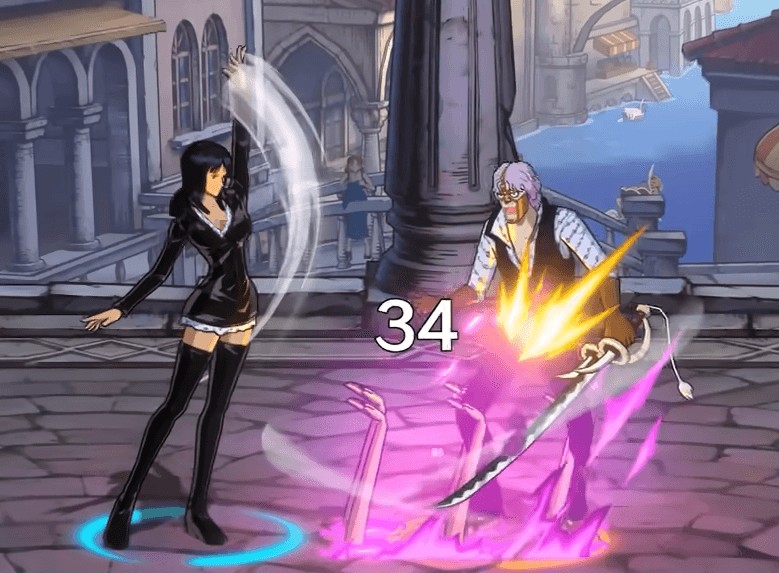 罗宾的“翅膀”在短按后,可以让自身在翅膀的助力下旋转起跳,并将敌人击飞到空中,在这个飞行期间可闪避飞行道具,她的“白目开花”一段能快速后撤转身,在转身期间能闪避飞行道具,并在后撤前的位置留下一束长有眼睛的手臂。