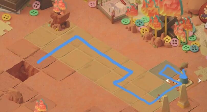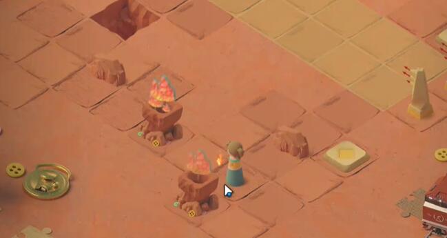 5、向上移动,点燃左上方的篝火。