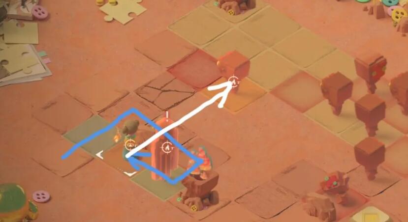 2、向左一格后射击上方的石像。