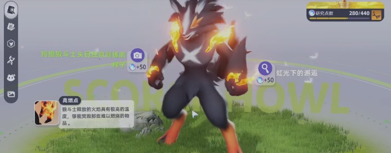 大家也可以通过点击了解宠物的具体喜好以及技能效果来查看可研究方向,在主要的界面上面还会显示这些宠物后期可以进行研究的内容,这些内容也是根据宠物的特性来进行设定的,解锁了一个宠物的特性之后,大家可以获取50~60点的研究点数,所以在解锁方式上面,大家可以根据不同的要求来进行操作,比如说拍摄不同变化的照片,大家可以根据在不同天气里面以没的变化来进行拍摄,这样掌握了它们的各个形态效果之后,就可以用到这些研究点数,因为这研究点数后期大家可以用来兑换一些道具。
