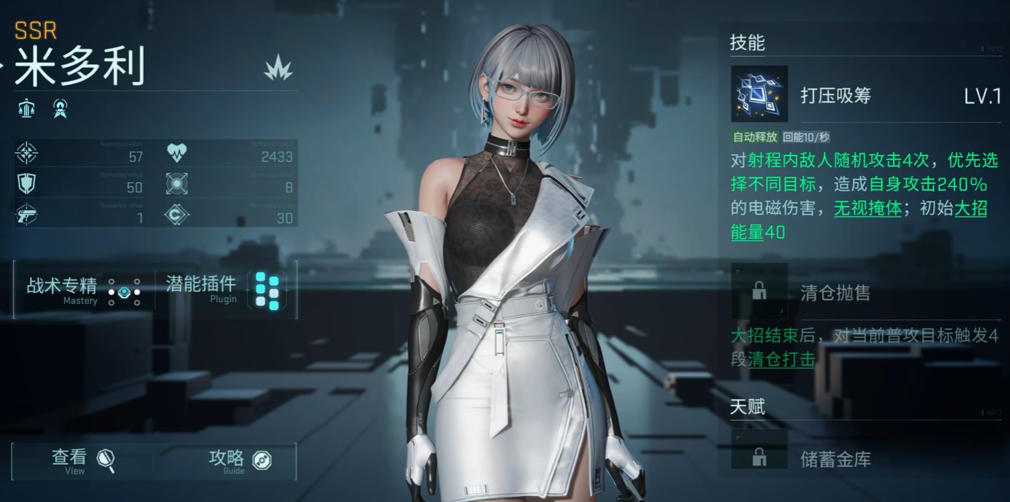 多米利在游戏当中的定位是,火力型输出,她可以对射程内的敌人造成随机攻击四次,同时,会选择不同类型的目标,基于自身攻击倍率造成240%的电磁性伤害,同时直接无视敌方掩体,输出穿透能力非常强。