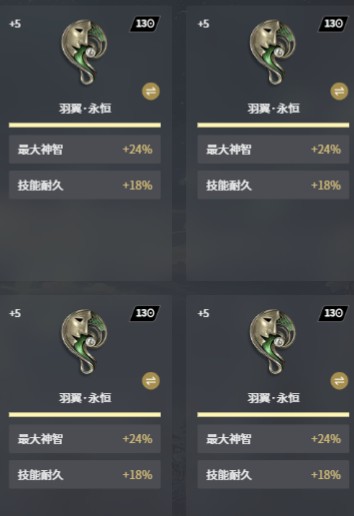 剩下的位置可以选择全带羽翼永恒,如果选择这一个,那就可以增加24%的最大神智以及18%的技能耐久,可以进一步的堆高神智,让技能的循环更加的顺畅,而且还可以叠技能耐久。保证技能是不会断档的,这就是一个百搭的选择,主要的优势就是稳扎稳打。根据这一些方向去挑选,那自然就会拥有更好的优势,因此大家就可以关注一下。