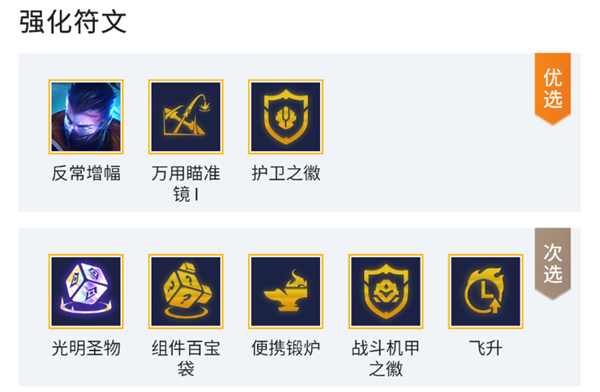 (1)优选:慎-反常增幅、万用瞄准镜、护卫之徽