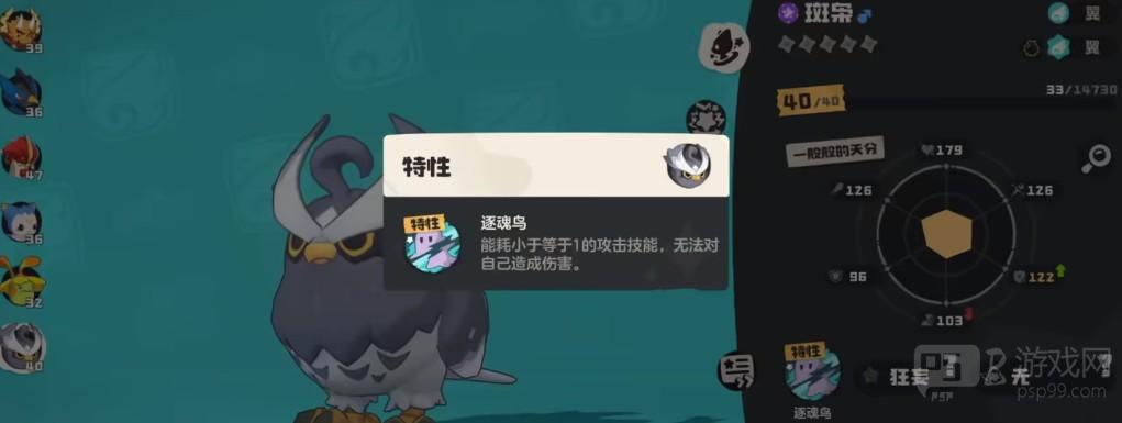 该战术的核心在于斑枭的一项特殊能力:当受到能耗低于1点的技能攻击时,能够完全免疫该次伤害。这项特性使得斑枭在对抗使用零能耗技能的精灵时具备极强的生存能力。借助此机制,斑枭可以在不承受任何伤害的情况下站场,为后续叠加增益效果创造绝佳条件,逐步建立起压倒性的战斗力优势。