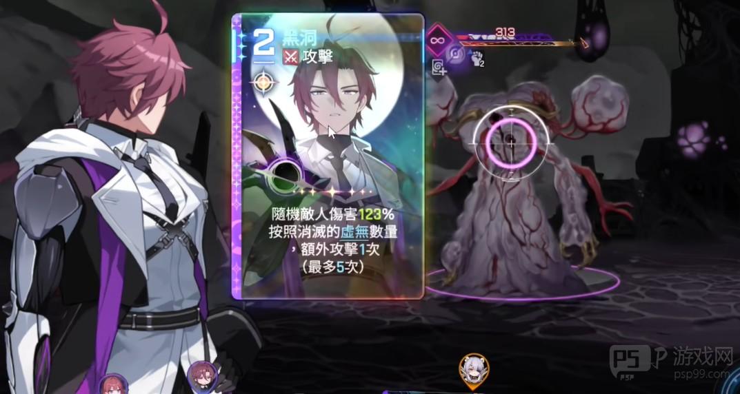 实际的战斗中释放的虚无黑洞技能对敌人造成的范围伤害是大家远想不到的,如果能够叠加虚无悖论使用,将会实现更高的增益效果,将攻击强化至30%。与团队成员共同作战,将会为队友们带来极强的生存能力,使队伍一直向前进攻敌人的领域。核心技能为虚无残影、消灭烙印,虚无残影在使用时需要消耗1AP便可造成240%的伤害,消灭烙印造成全体性伤害60%的同时,每一个回合都将会消灭一张卡牌,减少更多的能量消耗。战场控制能力是极强的,实现高伤害的同时确保了队伍的稳定输出和各方面的能力释放,是非常值得大家去体验的角色之一。