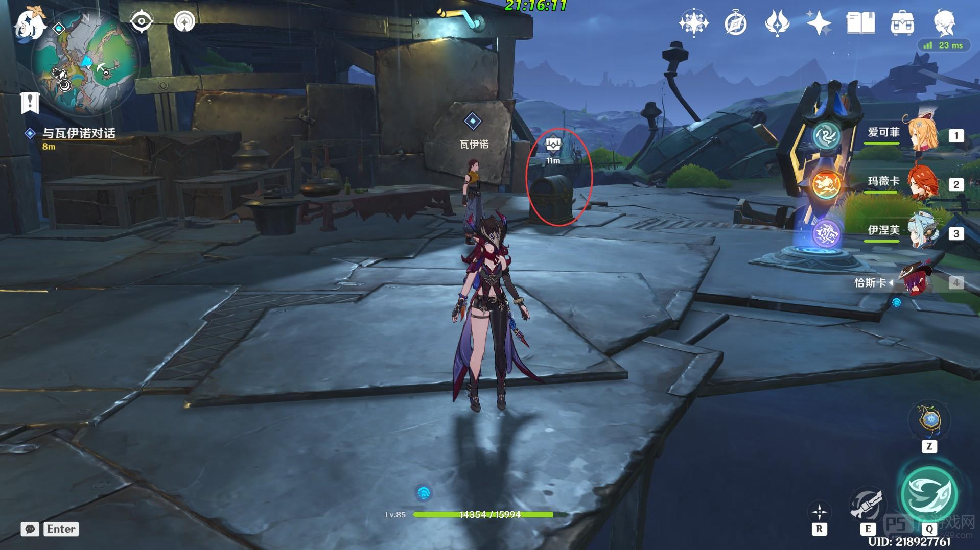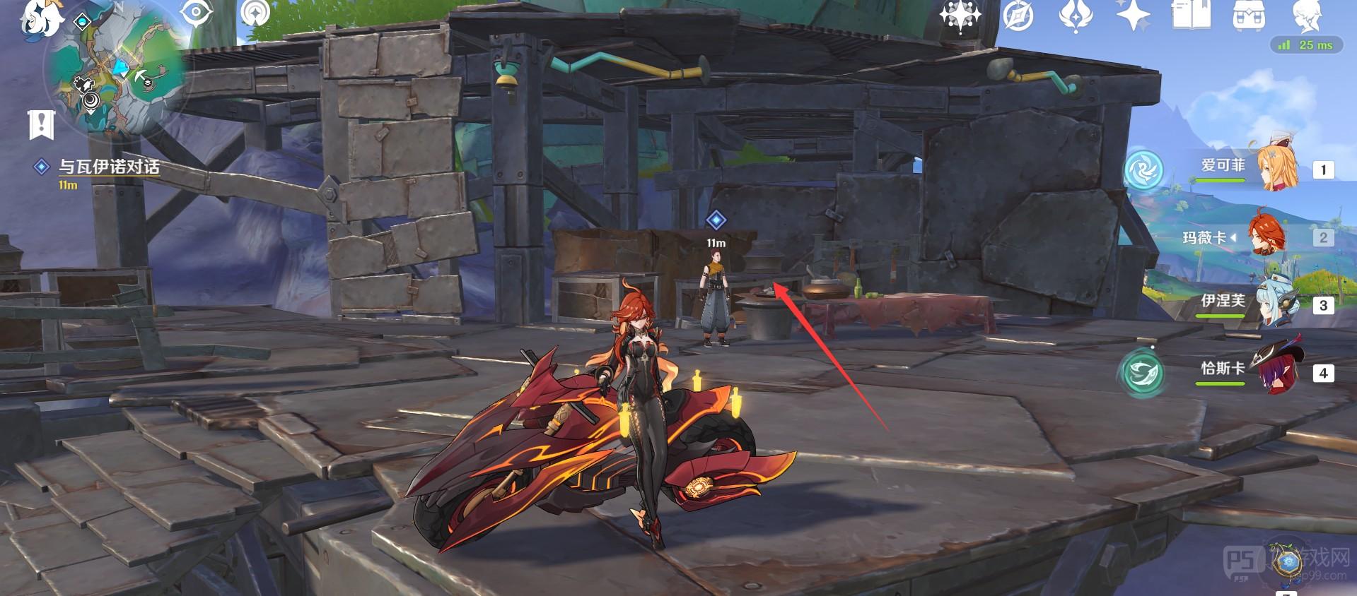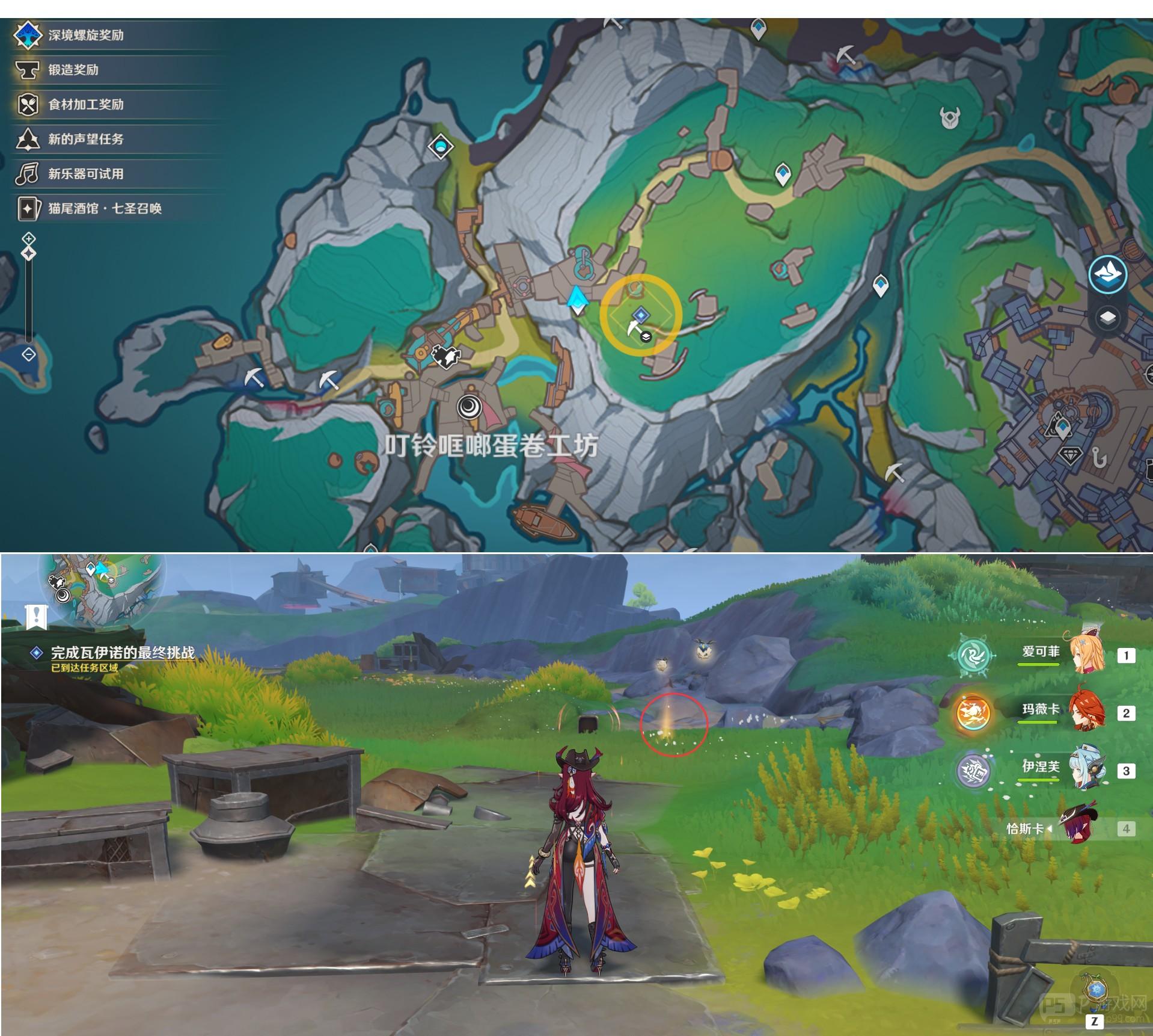 挑战二完成后,来到下图跳转点,转身,与瓦伊诺对话。
