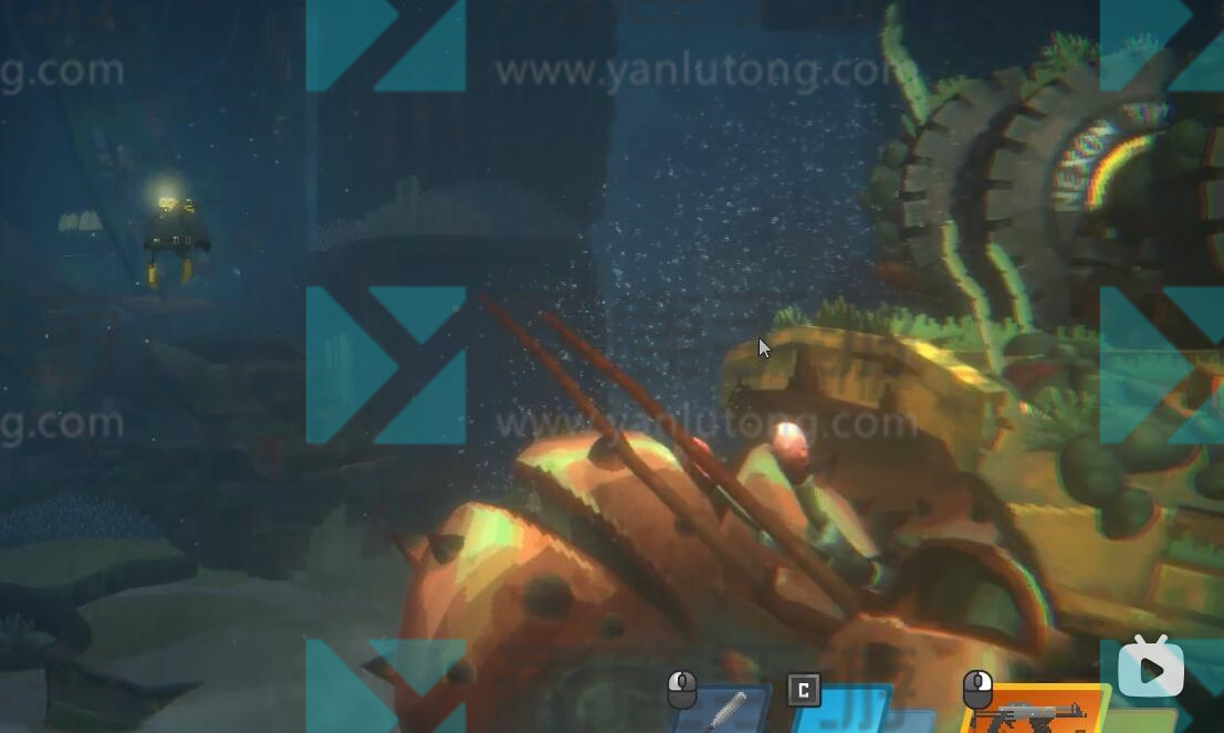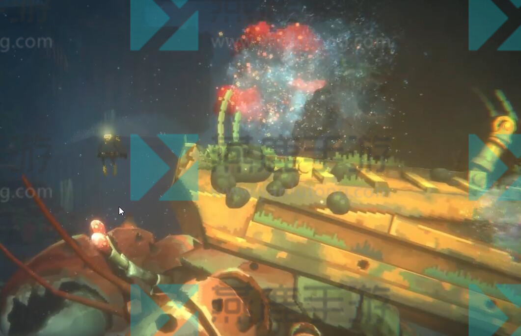 2、紧着着攻击寄居蟹的眼睛,这时候要小心上方掉落的木板,然后拿起爆炸桶扔到他背上。