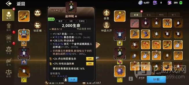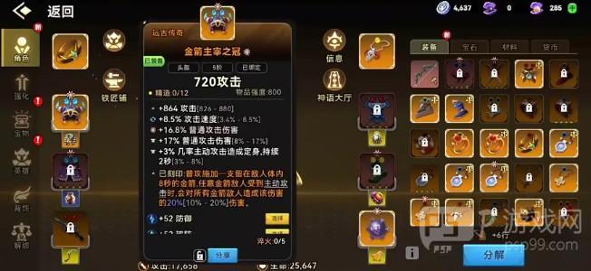 在刻印方面,可以先从武器方面说起。弓箭流的本命武器,那自然就是战神神力弓,不要纠结其他的武器。会有190%的群体伤害加成,并且还会适配连射以及蓄力两种模式。连射的时候就会触发388%的攻击效果,可以一边打一边清理现场,那效果自然就会比较出色。在蓄力时伤害就可以直接提升到188%。装备搭配方面,应该围绕移动速度,攻击,还有生存,每一件都要为刻印的效果铺路。鞋子需要选择道神靴,可以增加1000个攻击,还有28%的基础速度。更关键的那就是刻印属性,在消灭金甲之后,移动速度就可以上涨33%。而且暴击伤害会按照移动速度加成的30%额外的提升。