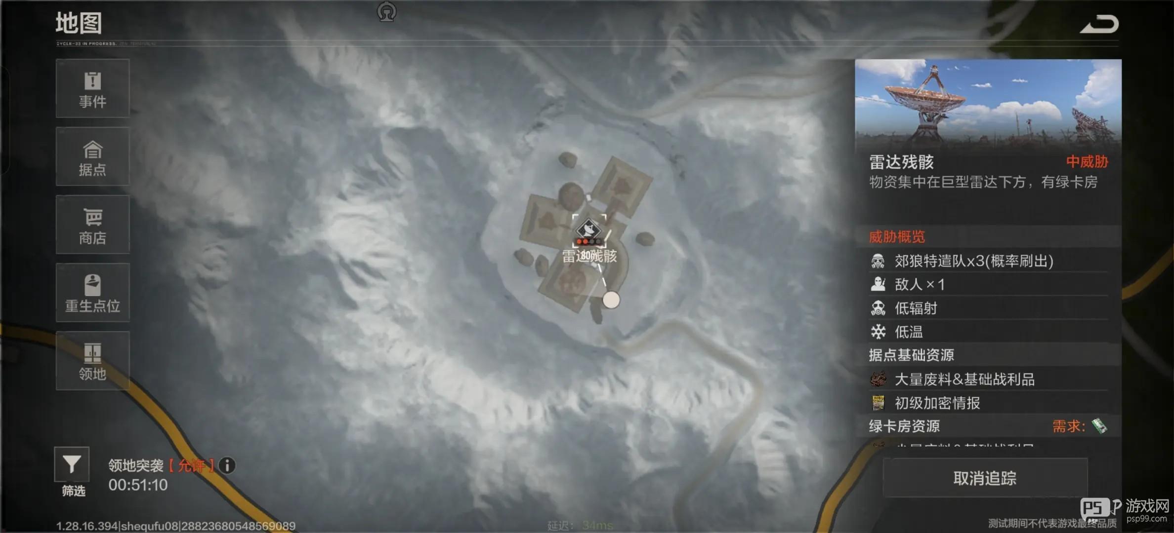 雷达残骸一般刷新在二级低中级辐射遗迹,需要玩家们的辐射数值达到25以上才能进入,如果达不到的话,这个副本是无法进入,接着进入之前是需要绿卡进行刷新的,没有这个绿卡,即便此刻处于刷新的阶段也无法进入。